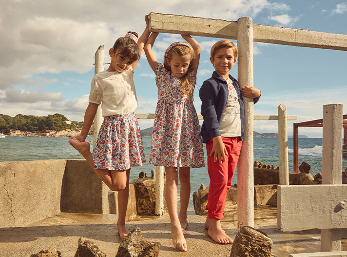 Vestido Reversible Rojo o con Estampado Floral para Niña