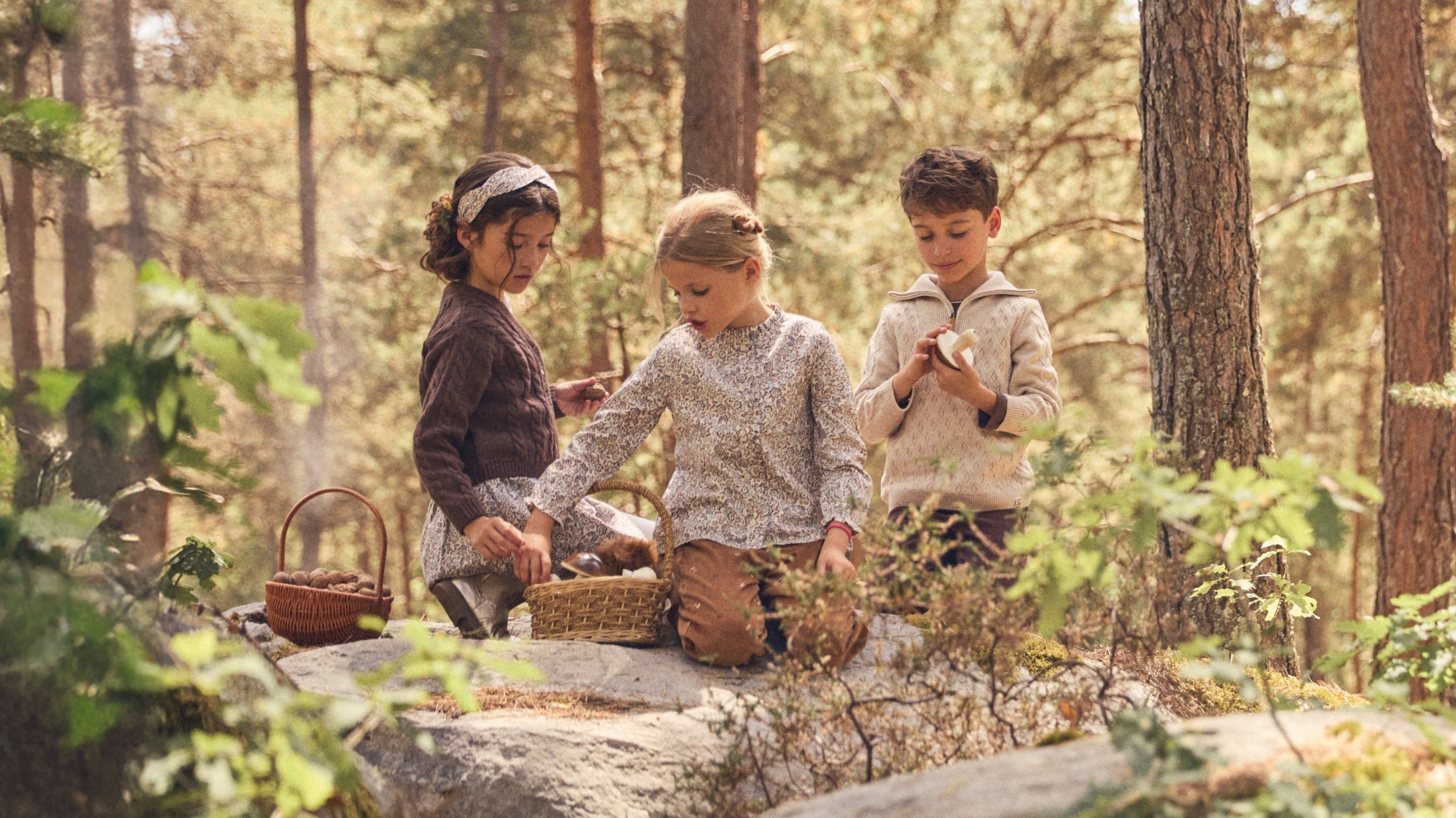 Entre follaje dorado y aromas amaderados, niñas y niños descubren un mundo tierno y mágico, poblado de animales, setas... e incluso un dinosaurio campista.
