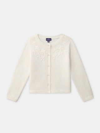 Para una pequeña soñadora que ama los looks ligeros, perfecto para media temporada. Su forma de cuello redondo y su apertura con botones facilitan el vestirse. Las flores bordadas aportan un toque poético y refinado.