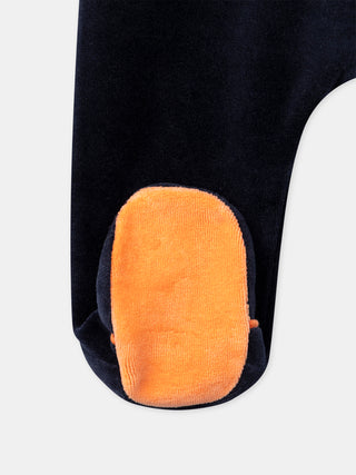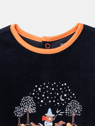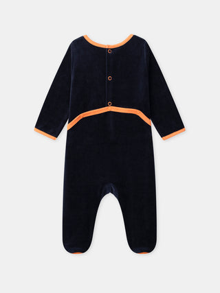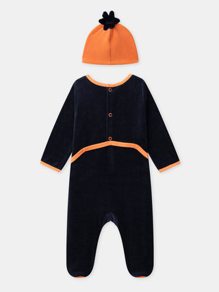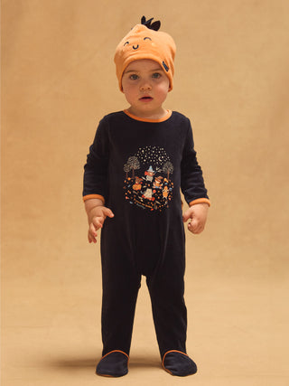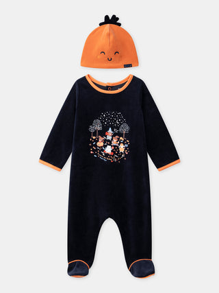 Grenouillère bleu marine en velours + Bonnet citrouille Bébé Garçon