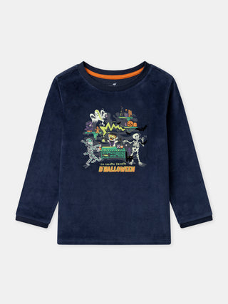 Pensé pour les petits aventuriers de la nuit, ce dors-bien s’adapte aux soirées d’automne et garde l’enfant bien couvert. Fabriqué en velours bleu foncé, il se distingue par sa douceur et sa coupe pratique. Son imprimé phosphorescent de petit vampire et sa cape à motifs chauve-souris créent une ambiance mystérieuse et amusante.