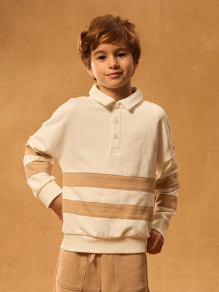 Pour les enfants au style soigné, en mi-saison. La coupe polo en molleton est confortable. Les bandes beiges créent un look rétro.